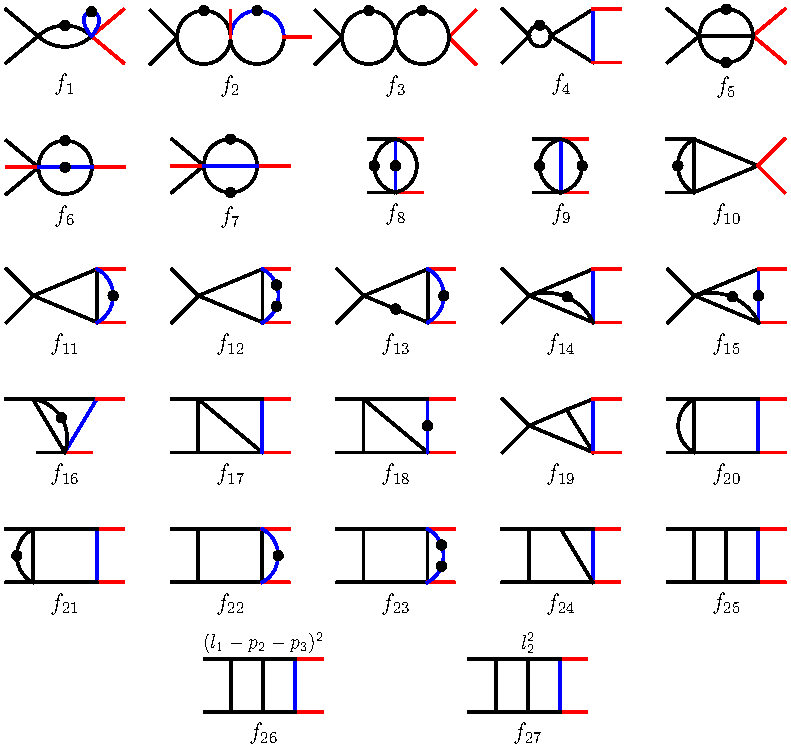 首先我们在第一章回顾了标准模型的建立以及利用费曼图进行微扰论计算的方法, 指出费曼图中涉及到的多圈费曼积分是微扰论计算的一大难点。 第二章中我们介绍了费曼积分的相关概念和目前与之相关的研究技术。 维数正规化方法可以将积分中的发散表征出来, 积分结果可以表示为$\epsilon$的洛朗级数展开的形式。 通过将费曼积分变换到特定表示下,我们能够直接计算出积分的结果, 或者得到某些可以利用的性质。 我们分别介绍了Schwinger参数表示、费曼参数表示以及Baikov表示。 费曼参数表示被广泛地应用于直接计算费曼积分的结果, 并且已经有许多实用的程序包被开发出来; 而Baikov表示则更多地用于分析积分性质,例如利用其来寻找正则基。 除了直接计算费曼积分,目前更加有效的方法是构建费曼积分关于运动学变量 的微分方程组,通过求解方程组进而获得费曼积分的表达式。 我们介绍了此类方法的基本概念和一些简单的例子, 并结合所给例子,展示了正则微分方程具有的便利性。 我们还介绍了如何利用费曼积分的cut,并且说明了利用其寻找正则基的可能性。 但是对于多圈多外腿以及多标度的积分,该方法应用时很难找到正则形式。 另外在具体工作中,还存在许多需要引入根式来构建正则微分方程系统的情况。 同时有理化根式通常只有在根式数量少、根式形式简单的情况下完成, 大量根式将导致我们难以利用已知的特殊函数GPL来写出积分的表达式。 对于轻夸克对湮灭产生玻色子对的过程, 已有不少唯象学方面的研究。 在所有带质量玻色子对产生中,该过程具有最大的产生截面, 被广泛应用于研究电弱相互作用的规范对称性以及电弱对称性的破缺机制。 我们不仅能够利用其对\Wbo 玻色子质量进行精确测量, 还能够对反常三规范玻色子耦合顶点进行检验。 由于w玻色子对的产生过程为Higgs粒子衰变过程的不可约本底, 其在寻找Higgs玻色子的过程中也有着不可或缺的作用。 研究轻夸克对湮灭产生玻色子对的过程的解析计算对于理论预言也是十分重要的方面。 但是由于其涉及的主积分中传播子所带标度较多, 完整的解析结果仍然处于探索中。 在本文第三章,我们计算了该过程中的平面主积分, 该过程中存在三个需要被计算的双圈平面拓扑结构。 由此我们建立了三个独立的微分方程系统, 在构建正则微分方程的过程中我们遇到了根式的有理化问题, 以及线性微分方程求解的问题。 最终写出了这些主积分的表达式, 其中有三个主积分属于椭圆sector, 最终的结果不仅包含GPL及其一重积分, 还有关于椭圆积分的迭代积分。 最后我们通过与现有数值方法作比较,检验了结果的正确性。 而如何高效获得这些出现的特殊函数的数值解,也是目前急需的技术, 只有攻克这些技术难题,我们才能系统且高效地得到更高圈、更多标度费曼积分的解析结果, 推动解析计算在高能唯象理论中更深层次的发展。 不止如此,研究高阶微扰论修正中费曼积分也能加深人们对于量子场论中数学原理的理解, 为理论发展提供有力的支撑。